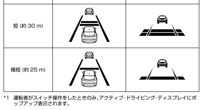 ※制動距離を考えると高速道路で短や極短の利用は控えるべきですが、車間距離を空けると割り込みや車線変更で前に入られる確率が上がってしまうため、ブレーキを踏む→MRCC解除される(追従しなくなる)など、制動距離が増える以上に事故リスクが高まるように感じます。
